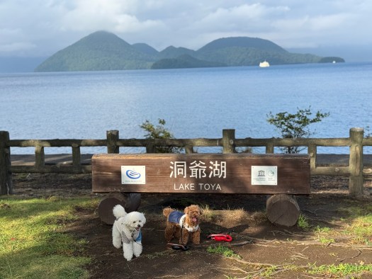 腹ごしらえをしたので、この後は「支笏湖」の横を爆走して、19時過ぎに「道の駅千歳」に到着した。ここは道の駅周辺の環境が良いので、ここで車中泊しようかとも思ったが、今日はノエルとリオンにご飯を食べさせて、先に進むことにした。