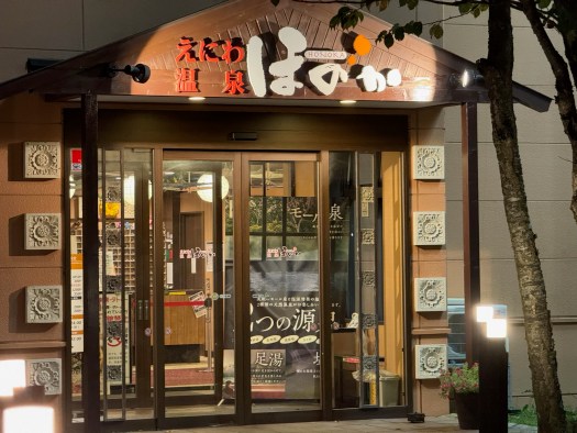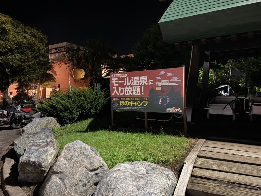 「えにわ温泉ほのか」にやって来た。ここの温泉には何と「ほのキャンプ」というキャンプ場が併設されていて、キャンプ場利用者は温泉に入り放題だという。この日も何組かの利用者がいた。