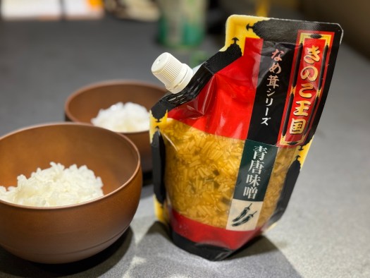遅くなったが、レンチンご飯と「きのこ王国」のなめ茸で夕食。💦