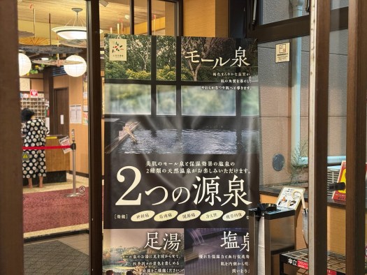 自噴のモール泉と塩泉の二つの源泉があるのがスゴイ。比較的混んではいたが、ゆっくりと温泉を楽しむことが出来た。