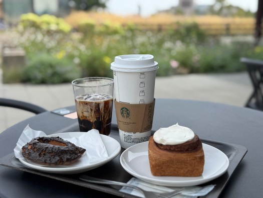 散歩のついでに、道の駅に併設されたスターバックスを朝食を食べることにした。
